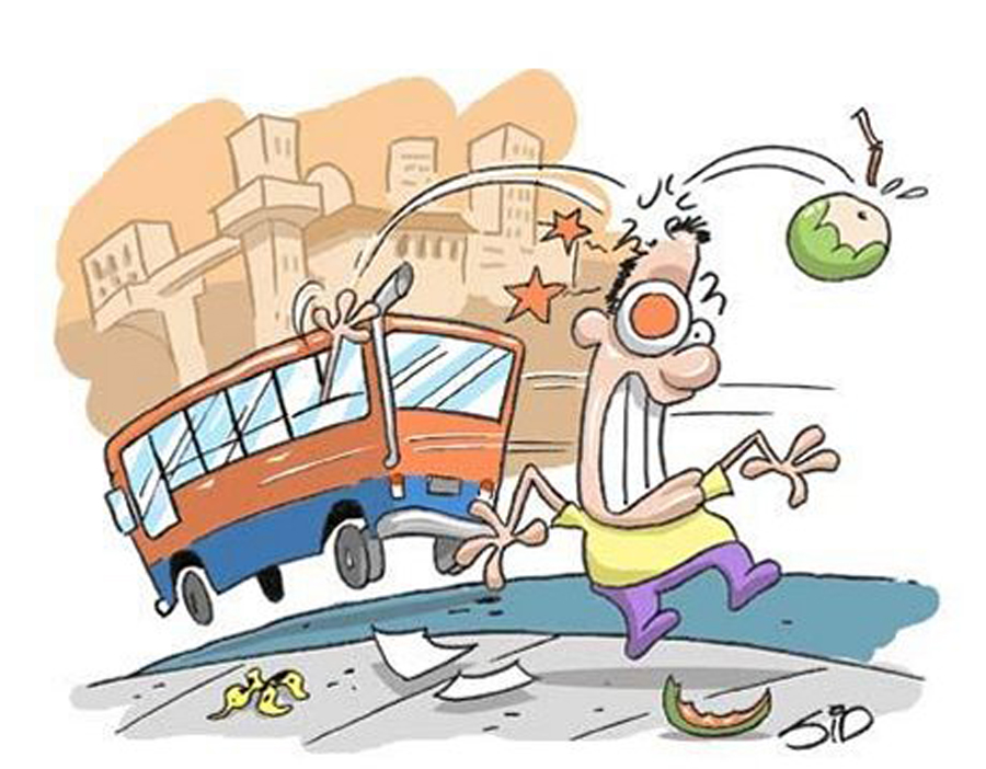 Ao desembarcar, não atravesse a rua pela frente do ônibus, é perigoso;